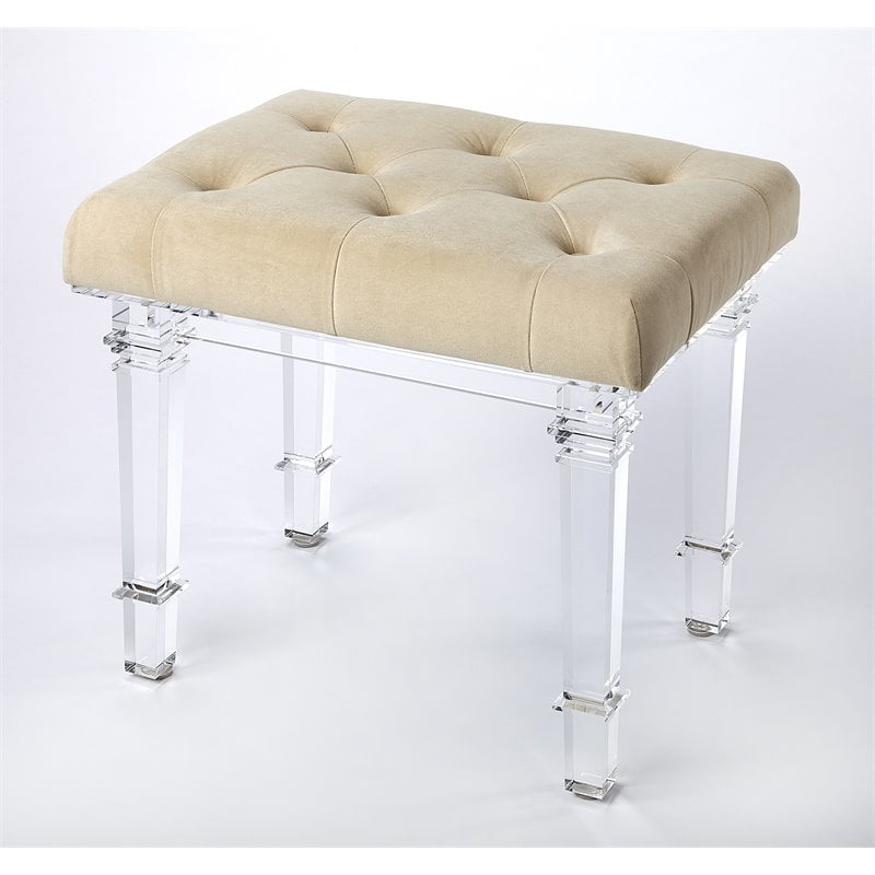 This adorable vanity chair is petite enough to tuck in a bathroom or bedroom, and brimming with feminine this clear, acrylic vanity stool with attached white suede cushion provides plush comfort.